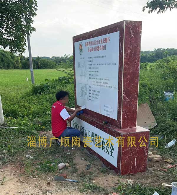 海南省高标准农田项目公示牌  耐腐蚀瓷砖标牌  耐盐碱耐高温不褪色不变色瓷砖项目牌  淄博广顺陶瓷公司制作